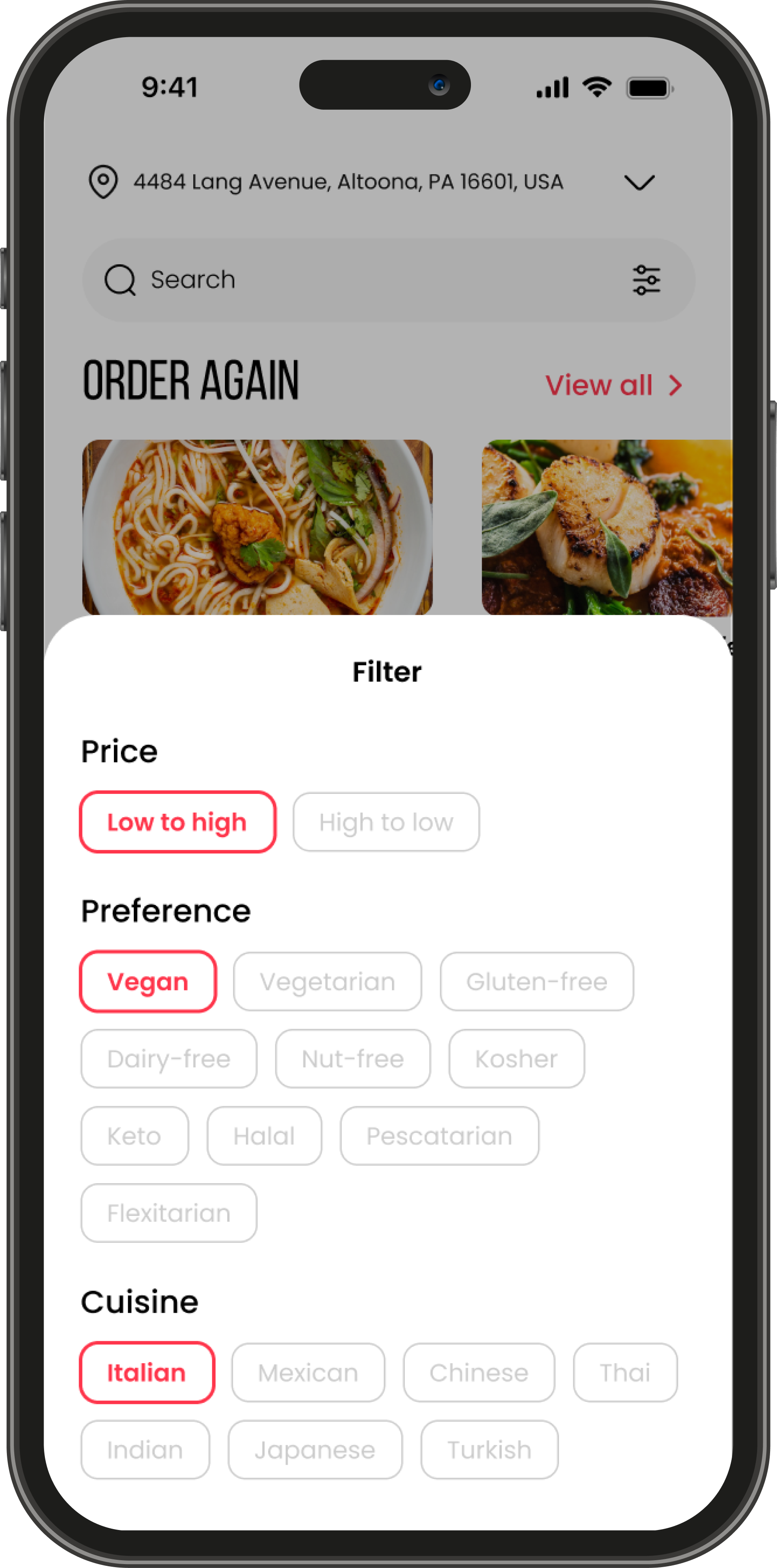Eatsy's menu will have a dedicated "Vegan" filter, enabling Theo to browse through a wide range of plant-based dishes from various restaurants. This filter will ensure that only vegan-friendly options appear, making it easier for him to explore new dishes.